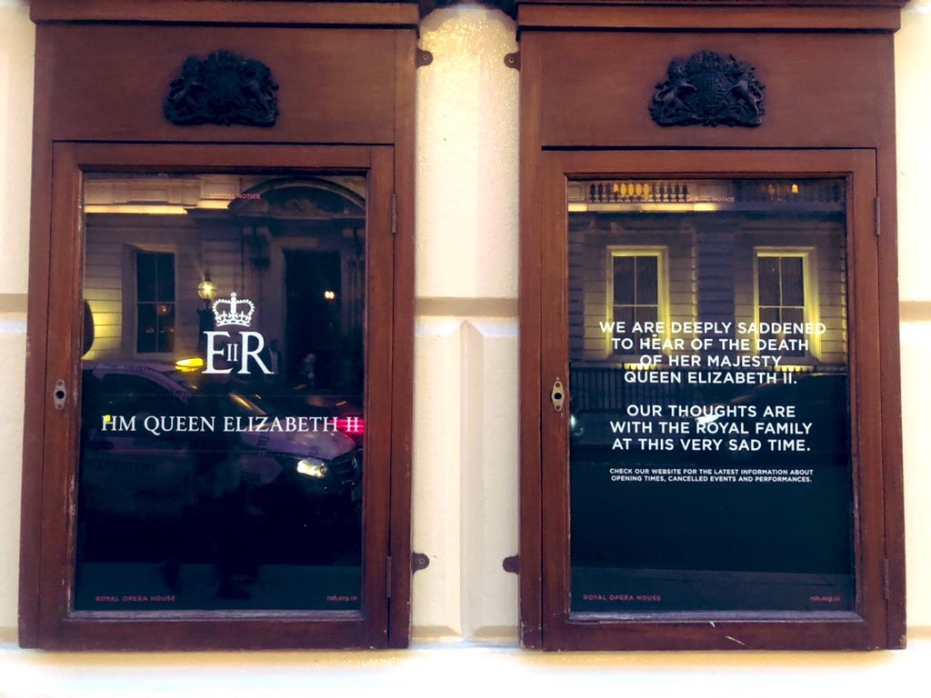 黒い服を着ている人が多い。喪に服すためとも、単に正装として着てきたともとれる。だって、ここはロイヤルオペラハウスだから。昨日、女王が逝去した直後の演目はキャンセルになったという。私が二ヶ月前に予約し、首を長くして楽しみにしていたオペラ「サロメ」の柿落としも、黙祷と国歌斉唱の後に幕を開けた。