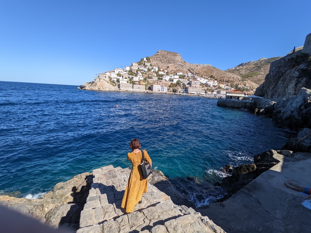 2021年9月〜2022年8月までイギリスの大学院に在籍していましたが、修士論文を無事に提出しました。写真は論文出してから行った、ギリシャのイドラ島で、フェリーで知り合った物理学者の人に撮ってもらったものです。物理学者の人はバカンス ではなく、島で行われるカンファレンスに参加するために来ていた。羨ましかった。わたしはイドラ島のことを深く知らず、海で遊べるとも思わず、スタニスワフ・レム生誕100周年のトートバッグのなかにMacBookAirを入れたスタイルで来てしまったので、内心めっちゃびびりながら岩礁を歩いていた。この後水着を買い、レムを岩陰に置いて泳いだが、その間もずっとびびっていた。でもなんだか気に入っている写真です。