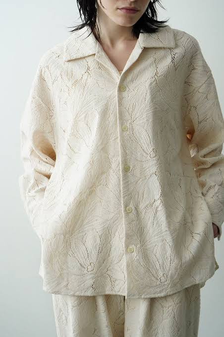 6)CLANE カーテンレーススリットシャツ 白